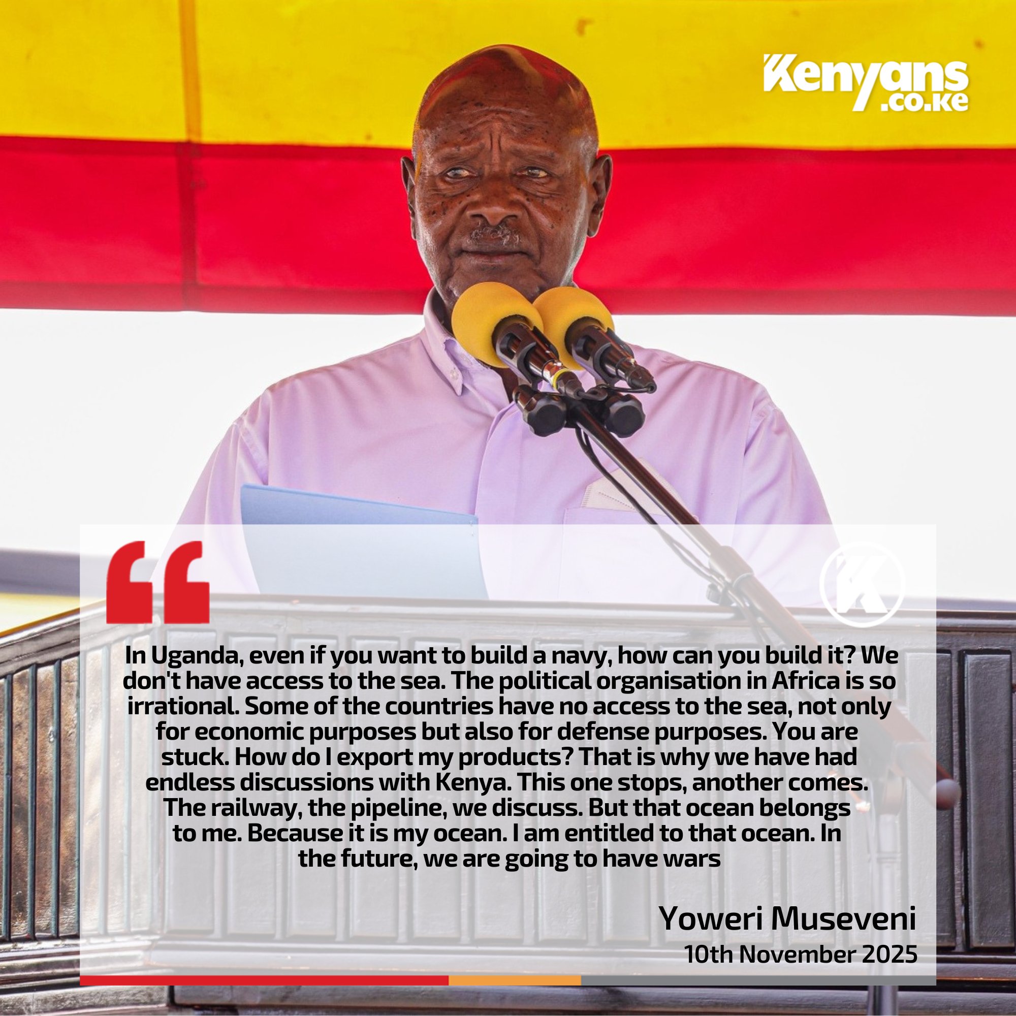 Museveni’s words, though provocative, tap into a legitimate historical and developmental grievance shared by several landlocked African states. Uganda, despite its access to major inland water bodies like Lake Victoria, remains economically constrained by reliance on coastal neighbors for trade routes and maritime access. The president’s statement, therefore, symbolizes a demand for equitable access and benefit-sharing from regional seas and maritime resources, which are often dominated by former colonial or global powers.