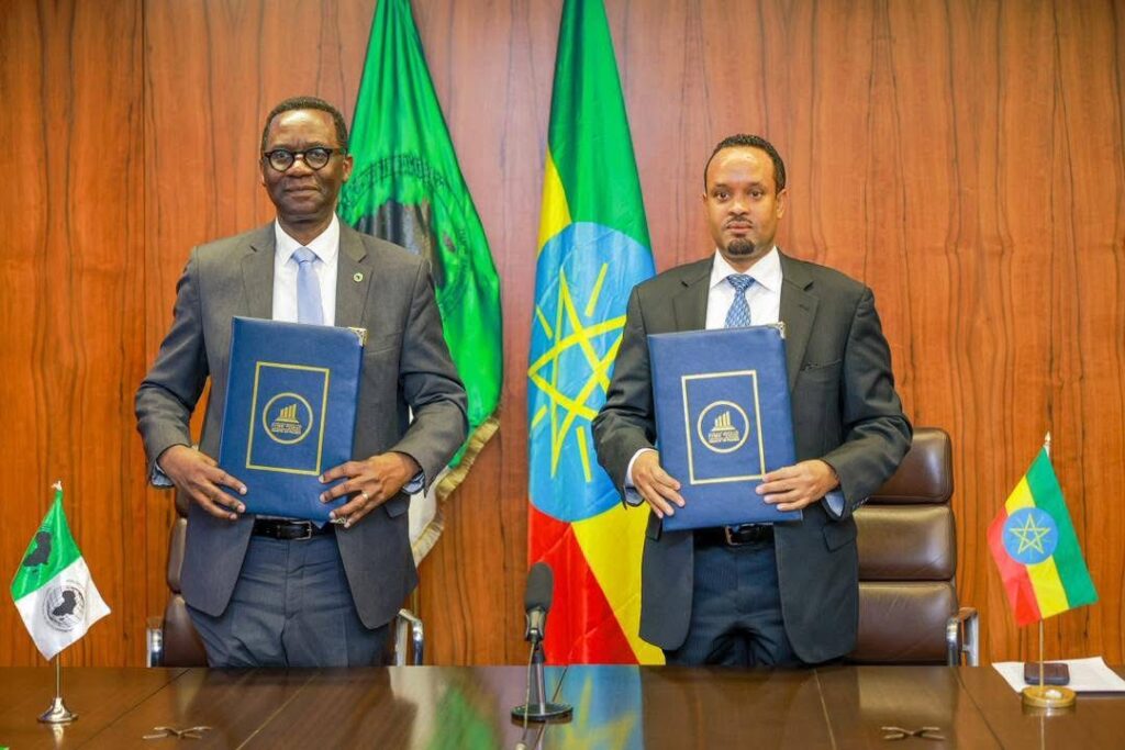 The Agreement was signed by H.E. Mr. Ahmed Shide, Minister of Finance of Ethiopia, and Dr. Alex Mubiru, Director General for East Africa at the African Development Bank.